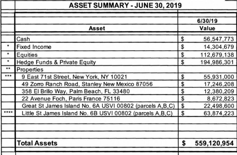 Of note, 680 pages of yesterday's release were entirely redacted. Oh, and here's Epstein's estimated net worth as of June 30, 2019.