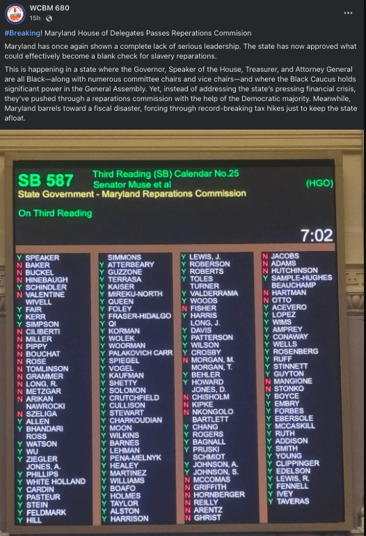 Far-Left Maryland Lawmakers Pass Reparations Bill While Financial Crisis Looms