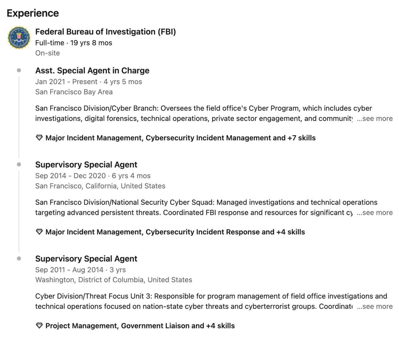 Chan, who identifies with “he/him” pronouns on his LinkedIn profile, still lists himself as the Assistant Special Agent in Charge at the FBI’s San Francisco Bay office, where he has served for over 19 years.