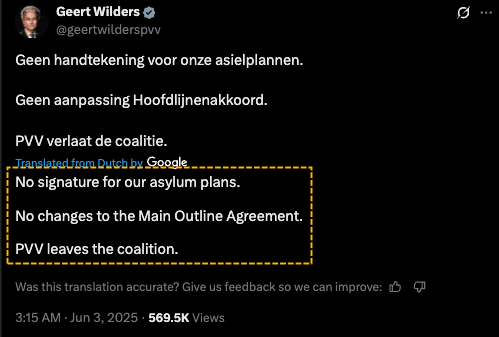 — Geert Wilders (@geertwilderspvv) June 1, 2025