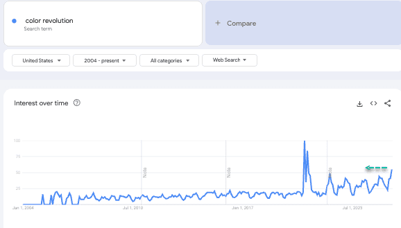 The search term "color revolution" has risen to the highest levels since the Marxist BLM riots in 2020.