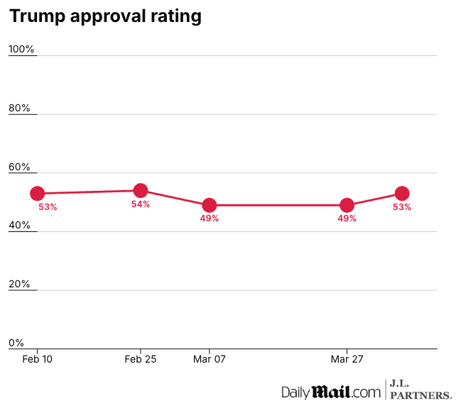 An exclusive DailyMail.com/J.L. Partners survey of over 1,000 registered voters conducted from March 31 to April 3 found that the Republican remains largely popular in the U.S.