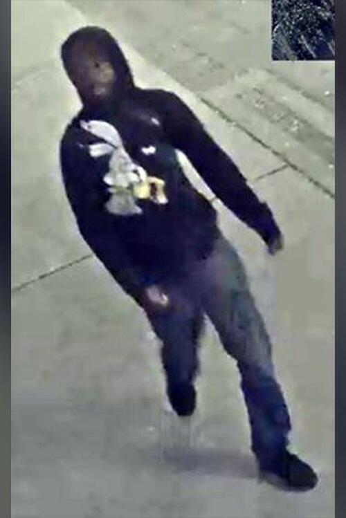 No arrests have been made in the case, however local police are working with the FBI to locate the individual below, wearing blue jeans and a dark hooded Bugs Bunny hoodie: