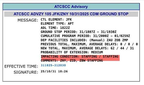 ⁰A ground stop is in effect at JFK until 7:30 PM due to staffing shortages in the air traffic system. Flights headed…