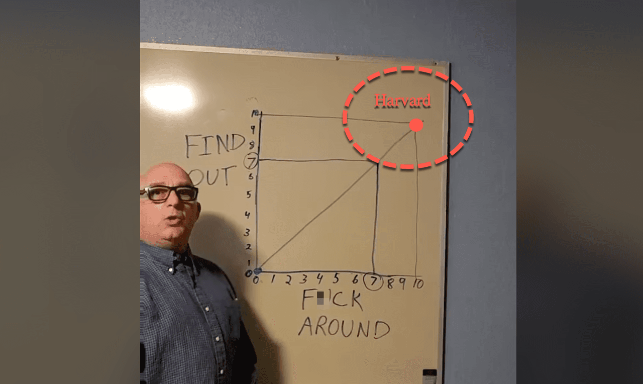 The woke liberal elites, perched high in their Harvard University ivory towers in Cambridge, Massachusetts, have been plotted at extreme levels on the "F*ck Around and Find Out" (FAFO) chart, which illustrates their relationship between taking risks ("f*ck around") and facing consequences ("find out") in response to President Trump's simple request to dismantle the toxic framework of diversity, equity, and inclusion on campus.