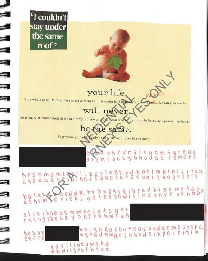 In another document from the Epstein dump, a victim writes a coded diary where she describes being a 'human incubator' who was forced to give birth to a child that was taken from her.