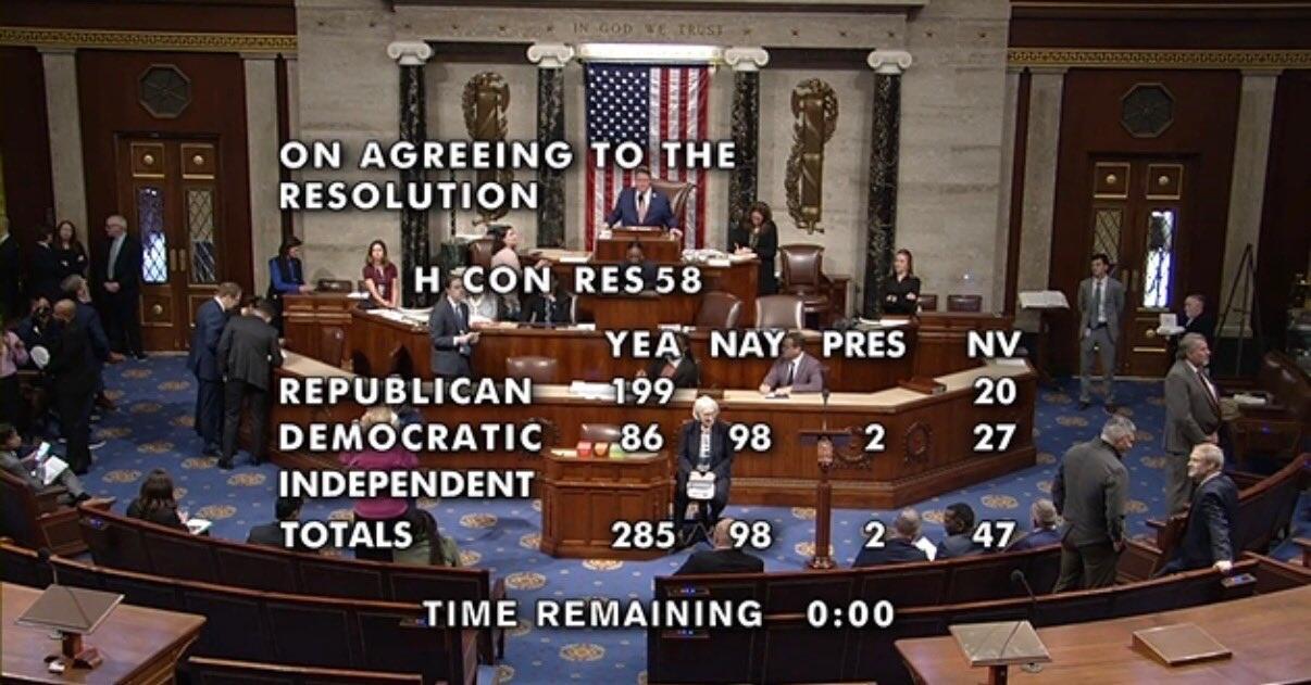 While 86 Democrats broke ranks to support the condemnation, 98 Democrats opposed the resolution, which passed 285-98.
