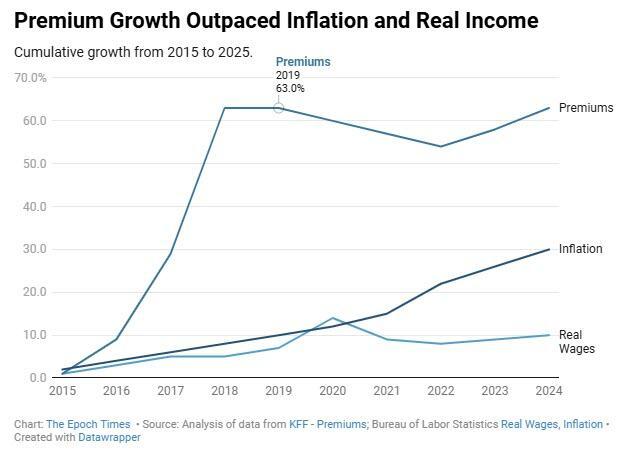 Obamacare premiums shot back up, according to data reported by KFF, rising more than 13 percent in three years.