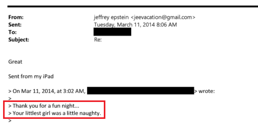 - Is the DOJ protecting someone here here, when we were reliably told that only victims would be redacted? Or is this a woman referring to herself as 'your littlest girl?'