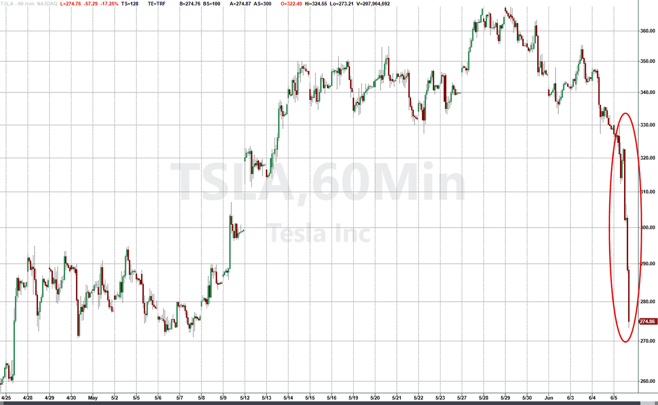 Meanwhile, shares in TSLA are down 16% as the market cascades lower. Fun fact, Tesla was the most bought retail stock over the last week.