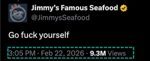 — Jimmy’s Famous Seafood (@JimmysSeafood) February 22, 2026