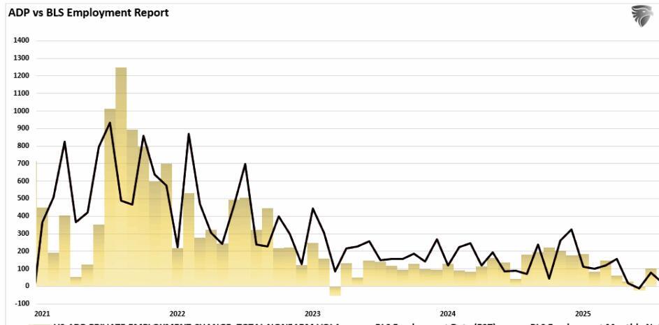 With the federal government shutdown delaying critical economic reports, the official jobs data remains incomplete. Last week, the Bureau of Labor Statistics (BLS) released the September jobs report. However, the October report, originally expected earlier this month, remains in limbo, potentially permanently. The reason is due to the shutdown, as the BLS was unable to conduct the household survey. As such, the Fed will have to rely on alternative data for perspective on the strength or weakness of the labor market.