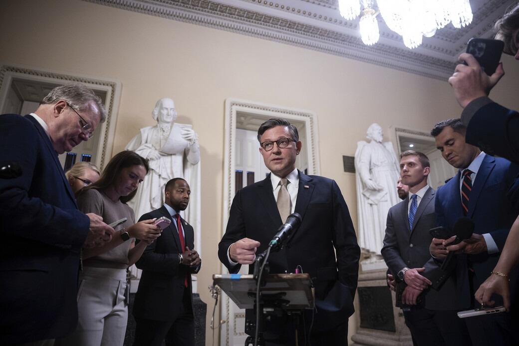 Speaker Johnson is under pressure from both establishment Republicans and the hard-right Freedom Caucus as he tries to corral votes for any funding deal.