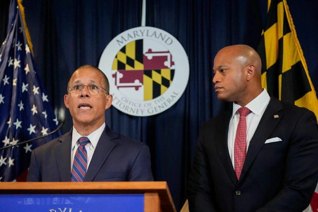 Maryland Attorney General Anthony Brown, left, speaks as Gov. Wes Moore listens during a news conference in Baltimore, MD., on Sept. 24, 2024. Stephanie Scarbrough/AP Photo