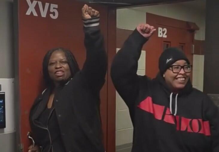 A video of the two women posted on line shows them emerging from detention on Friday, raising their fists.