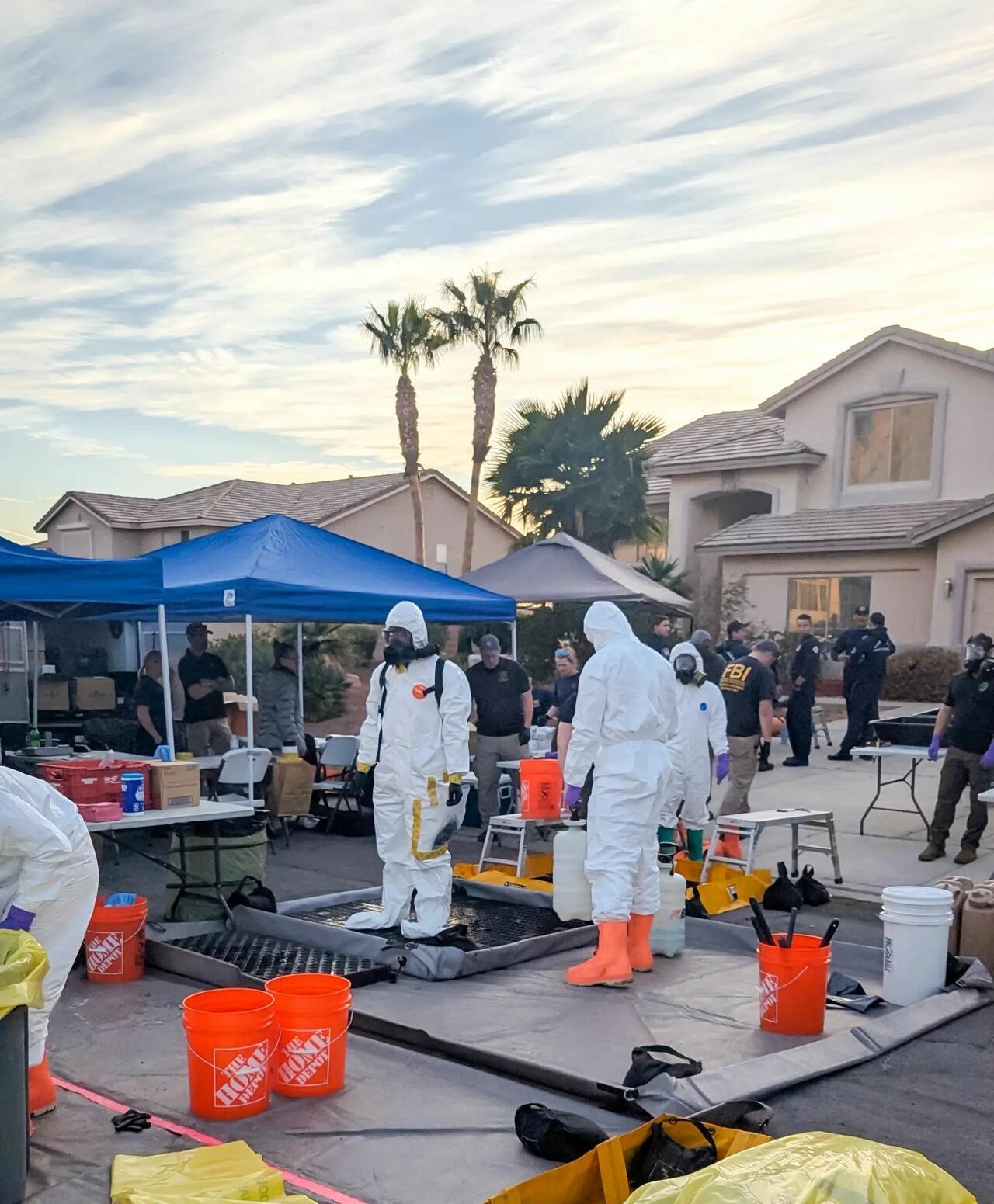 However, when they arrived, they saw police officers and hazmat-suited personnel throughout the property.