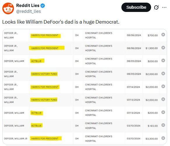 Although it is unconfirmed, you may not be surprised as his family's political leanings...