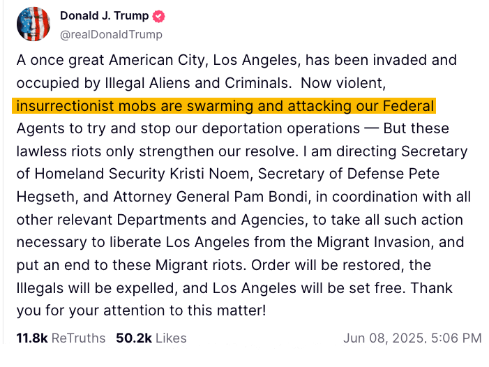 — Governor Gavin Newsom (@CAgovernor) June 8, 2025