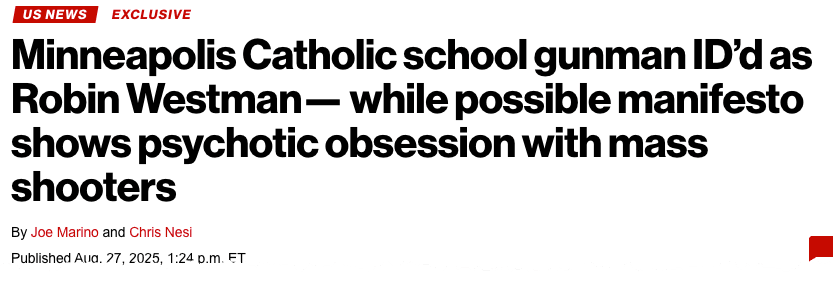 BREAKING: Alleged Minnesota Catholic school shooter has been identified as Robin Westman, reportedly identified as transgender.