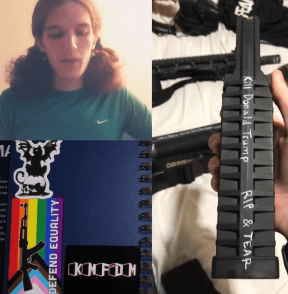 One screenshot from the video showed a semi-automatic rifle and a shotgun, with text on one magazine reading "kill Donald Trump."