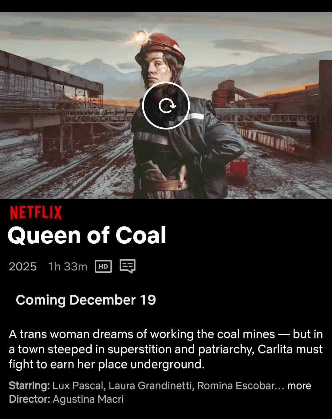The newest foreign art house slop making it's way to Netflix audiences in the US this month is a movie called "Queen Of Coal", originally titled "Miss Carbon" in Argentina where the flick was originally released. Pedro Pascal plays a role in the film (of course he does), and it's set to hit Netflix on December 19th.