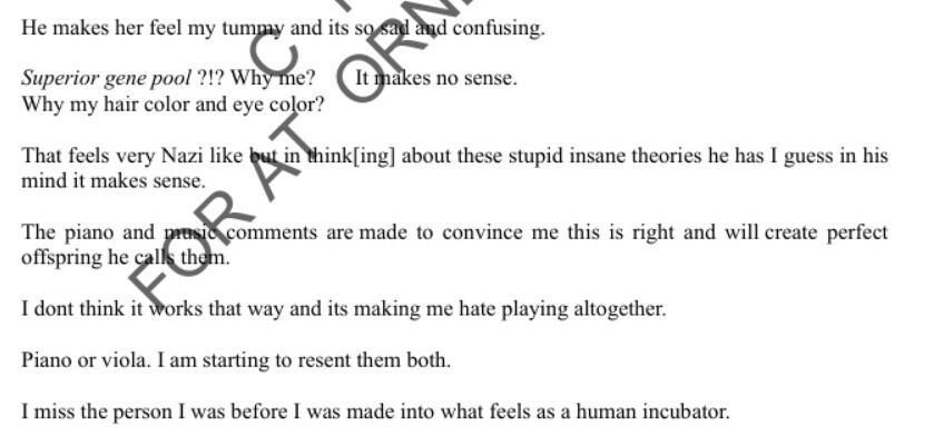 In another document from the Epstein dump, a victim writes a coded diary where she describes being a 'human incubator' who was forced to give birth to a child that was taken from her.