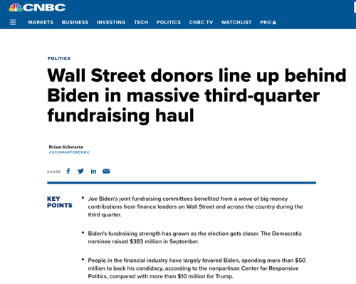 The other key components of this coalition are Silicon Valley giants and Wall Street, both of which overwhelmingly donated to the Biden/Harris campaign and the Democratic Party generally. The primary weapon tech companies offer is not just huge sums of money — though that of course is welcomed and useful — but information control: I continue to regard the decision of Twitter and Facebook to block and suppress the ability to disseminate The New York Post story on Hunter Biden’s laptop as one of the most shocking and alarming events of the last four years: political censorship cheered by most of the pro-Biden press.