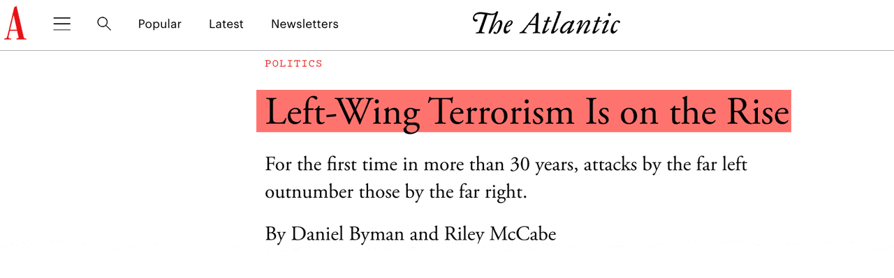 The latest justification appears to be an intense climate of political violence emanating from left-wing activists in September, from the Charlie Kirk political assassination by a suspected furry-loving radical leftist to the transgender shooter who shot up a Minneapolis church, even leftist publication The Atlantic couldn't ignore this alarming issue with a recent article titled "Left-Wing Terrorism Is on the Rise."