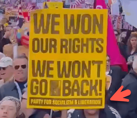 Professional protest signs provided by the communist group Party for Socialism and Liberation. PSL is linked to billionaire Neville Roy Singham hiding in China.