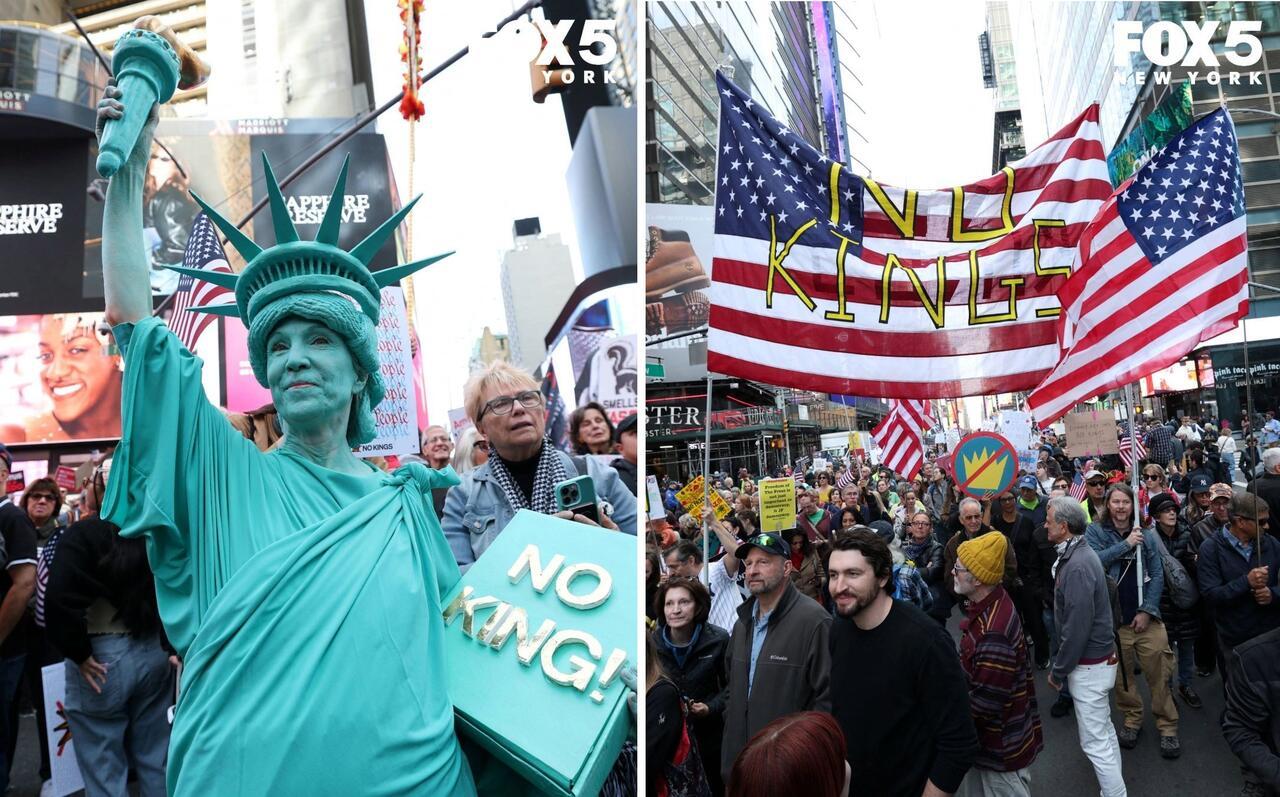 NOW: Large crowds gather in Times Square for "No Kings" protest in NYC