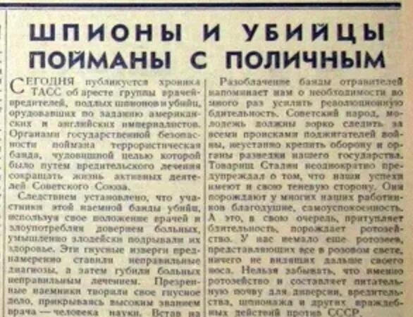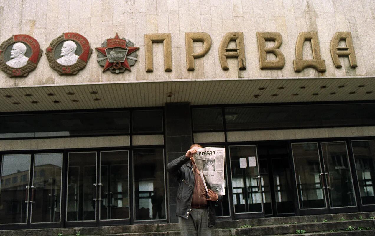 The office of my first full-time reporting job with the Moscow Times was in the Pravda building. I used to spend lunch hours walking through the doors shown in the photo above, beering up in a cafeteria with writers from the sports section of Komsomolskaya Pravda, at the time the Guinness Book record-holder for world’s largest circulation. With over 21 million readers, “Komsomolka” sure as hell qualified as “strong public media,” but hardly went “hand in hand” with democracy. Like the rest of ex-Soviet media, its owed its circulation to decades of forcing insane lies on readers, like cheery dispatches about the “Doctor’s Plot” purges of 1953: