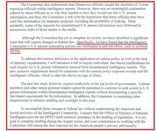Back in 2017 when House Intelligence Committee Chairman Devin Nunes was working to reauthorize the FISA legislation, Nunes wrote a letter to ODNI Dan Coats about this specific issue: