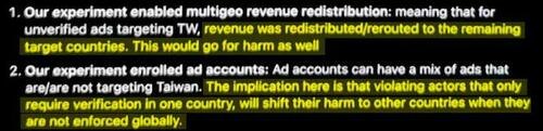 If an unverified advertiser is blocked from showing ads in Taiwan, for example, Meta will show those ads more frequently to users elsewhere, creating a whack-a-mole dynamic in which scam ads prohibited in one jurisdiction pop up in another. In the case of blocked ads in Taiwan, “revenue was redistributed/rerouted to the remaining target countries,” one March 2025 document said, adding that consumer injury gets displaced, too. “This would go for harm as well,” the document noted. -Reuters