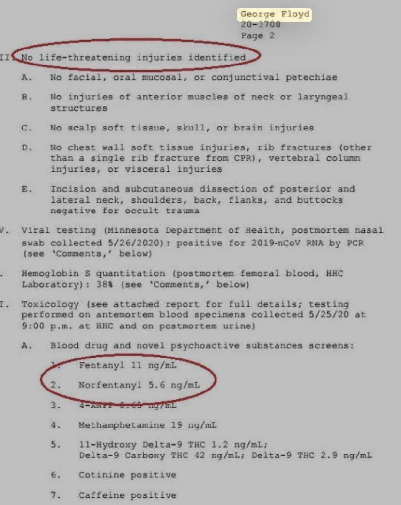 Furthermore, Baker found 11 ng/mL of fentanyl in Floyd's toxicology; this is at least twice the amount required for a common deadly dose. He was described by witnesses as erratic and 'extremely impaired', throwing himself around the back of the police vehicle to escape arrest. Even if Floyd was a chronic user, fentanyl is known to exacerbate heart disease.