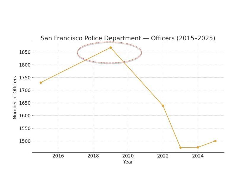 Surprisingly, Benioff has yet to delete this X post, showing the plunge in police officers in the crime-ridden metro area. He did not provide context that the drop began around the time the far-left city leaders pushed "defund the police" and continued other failed criminal and social justice reforms.