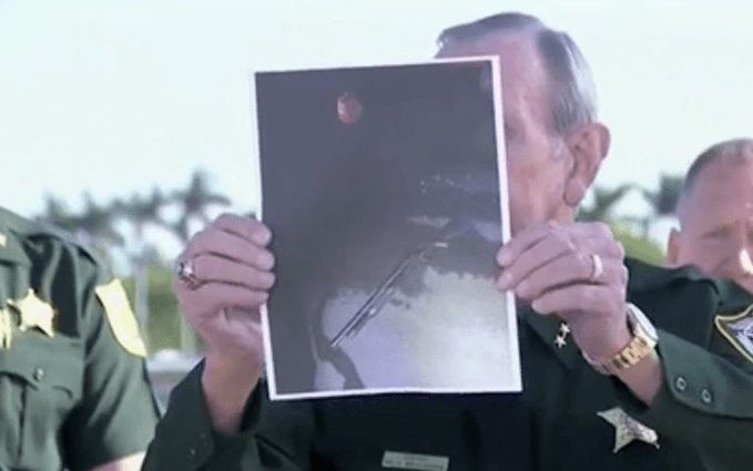 Earlier, Palm Beach County Sheriff Rick Bradshaw told reporters at a press conference that the young man was "ordered to drop the two pieces of equipment he had with him. At that time, he put down the gas can and raised the shotgun to a shooting position."
