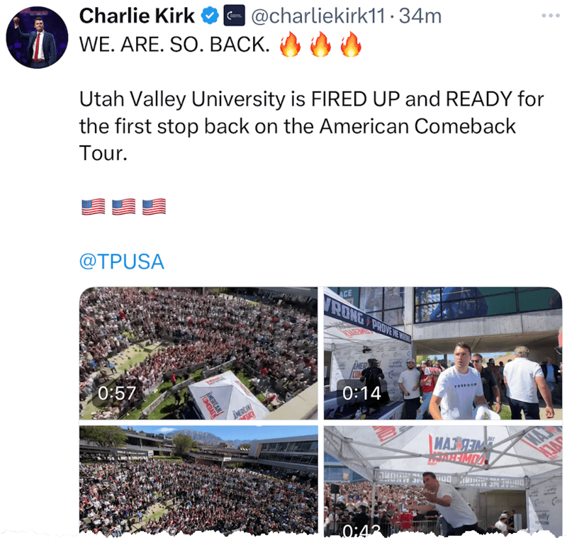 Charlie Kirk's last post on X before he was shot: