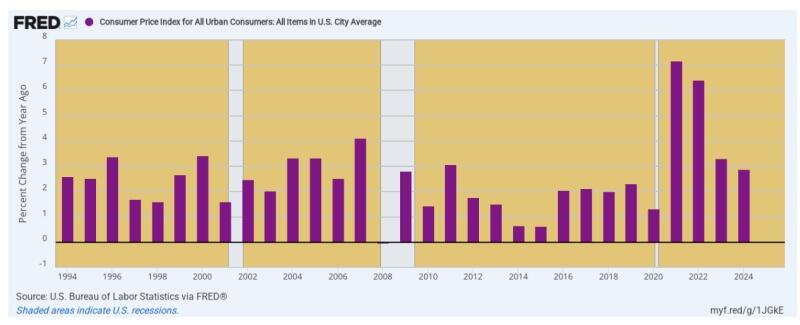 The CBO projections also assume that inflation stays strictly in its Fed-prescribed lane at around 2.0% for the next 30 years, as well. That hasn’t remotely happened during the last 30 years, when the inflation rate has exceeded the 2.0% mark during 17 years, and frequently by substantial amounts.
