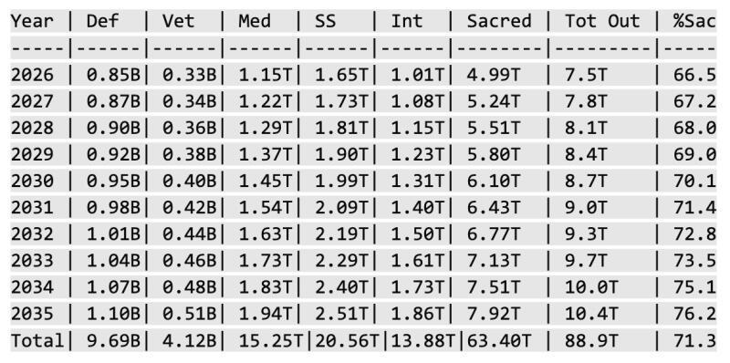 Baseline Federal Spending For The GOP’s Sacred Cows, FY 2026 to FY 2035