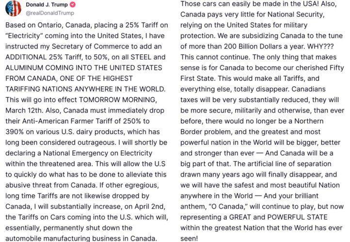 As highlighted in the Donald’s rant above, we have the familiar Trumpian claim that Canada is “ONE OF THE HIGHEST TARIFFING NATIONS IN THE WORLD”.