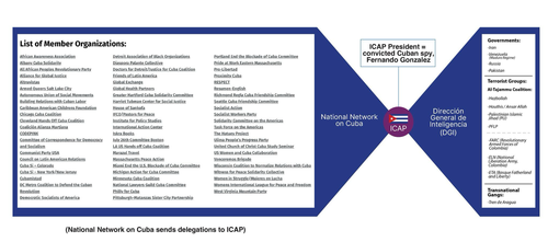 According to a defected Cuban intelligence officer and corroborating intelligence reporting, legacy Castro-aligned groups such as the Venceremos Brigade and the National Lawyers Guild have been controlled by Cuba's Dirección General de Inteligencia (DGI) since at least the 1980s. That influence is exerted through ICAP (the Cuban Institute for Friendship with the Peoples).