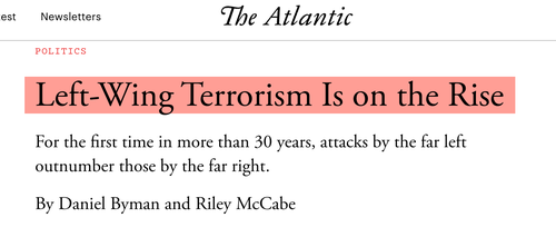 The Atlantic is absolutely correct: "Left-Wing Terrorism Is on the Rise." And perhaps we just unveiled why...