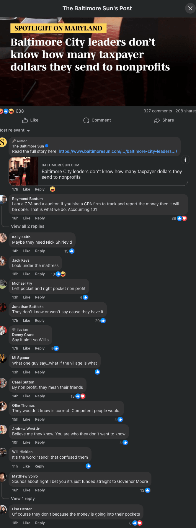 Hauf's investigative team asked Baltimore City Council members, along with the mayor and comptroller, whether they track nonprofit funding. None provided a precise figure or centralized data.