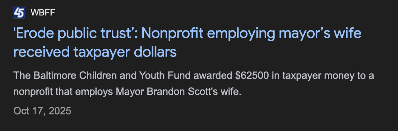 Fox Baltimore reported earlier this month that the Baltimore City Health Department funneled more than $60 million in federal funds since 2022 to Connections Thru Life, a nonprofit that has not completed required audits and shares office space with a for-profit firm led by the same individual.