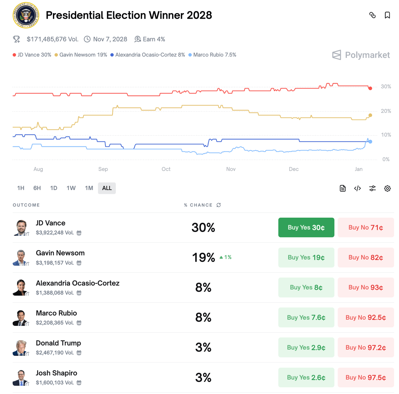 The timing of DOGE-style operations by citizen journalists in California comes as Polymarket odds for Newsom winning the 2028 presidential election currently stand at 19%.