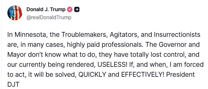 A state of lawlessness exists on the streets of Minneapolis at this moment, and President Trump just threatened to invoke the Insurrection Act…