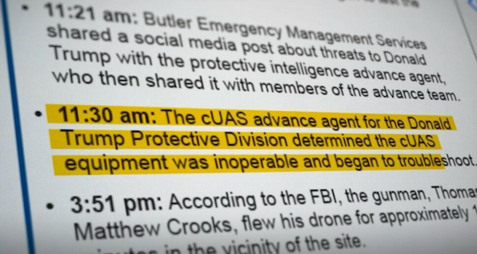 - On the day of the attack, Crooks conducted surveillance at Butler - flying a drone over the rally site for 11 minutes - right as the Secret Service's anti-drone system was mysteriously down.