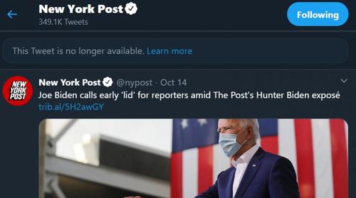 "Anyone who looks at The Post’s Twitter feed can’t even see the tweets about the Biden stories, which have been replaced by messages saying, 'This Tweet is no longer available,'" the Post wrote on Friday.