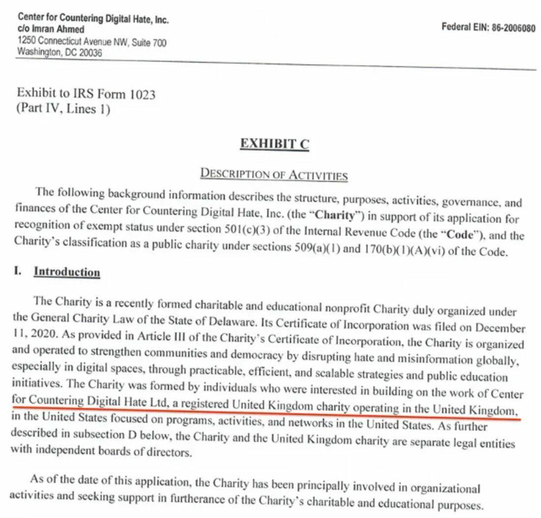 CCDH falsely claimed in their 2021 submission to the IRS that CCDH was already operating as a registered charity in the U.K. However, London investigative reporter Paul Holden found that CCDH never registered as a British nonprofit. CCDH likely made the false claim to speed up the IRS process to gain tax-exempt status so they could begin fundraising in the States.