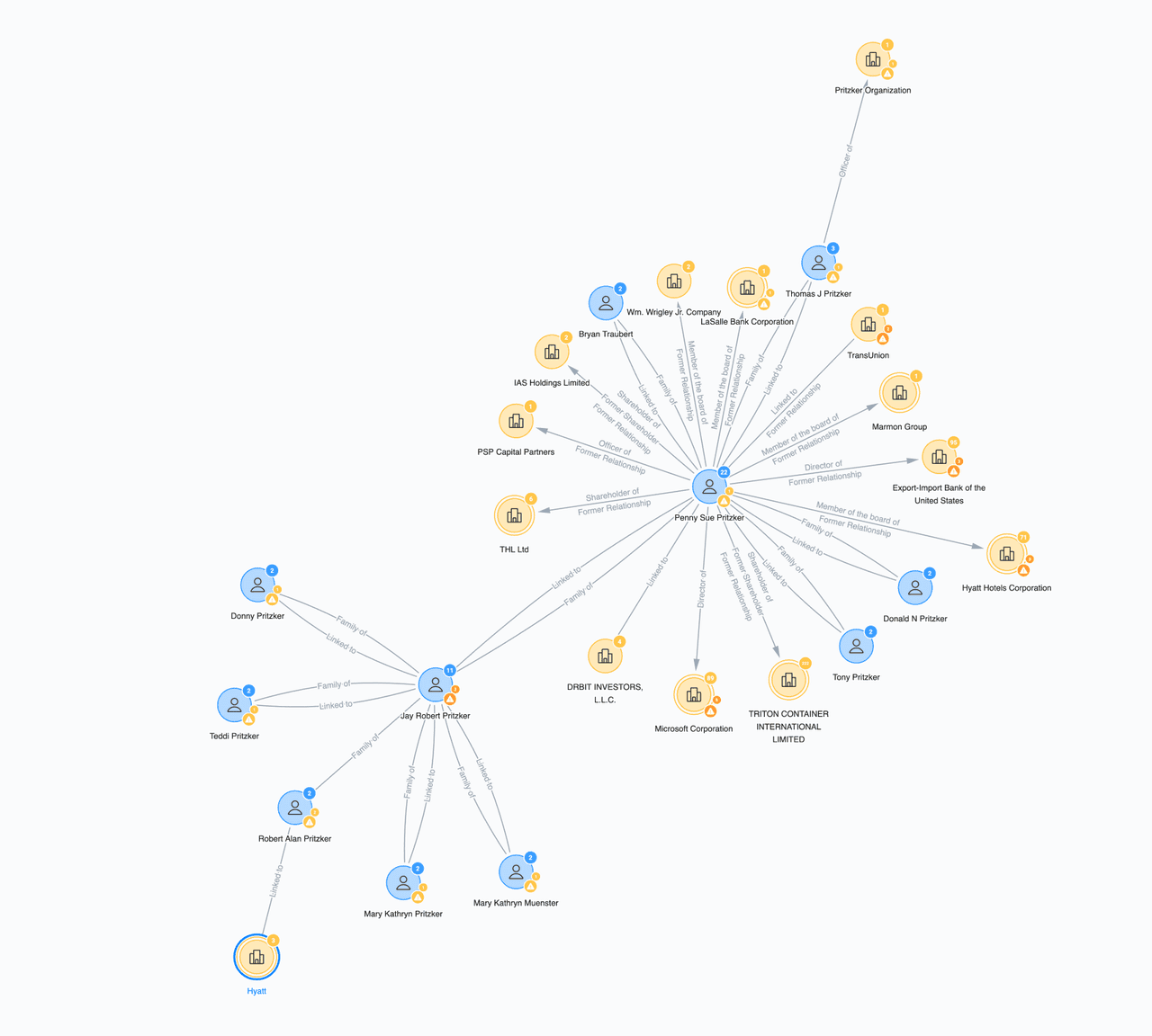 Publicly available data shows the wealthy Pritzker family and their connection with Hyatt.